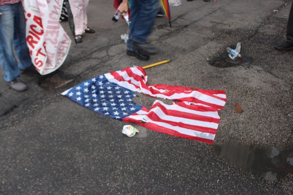 Os ativistas exigiram a soberania dos povos e prestaram solidariedade à luta anti-imperialista, em especial à Resistência Nacional Palestiniana, levando bandeiras e cantando palavras de ordem. Durante uma das falas, manifestantes atearam fogo numa bandeira dos EUA sob os gritos de Fora Israel das terras palestinas, fora ianques da América Latina!.