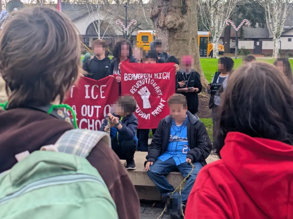 Em Portland, Oregon, mais de 500 estudantes de várias escolas abandonaram as aulas no dia 17 de dezembro para protestar contra o ICE. A greve foi organizada pela Frente Estudantil Revolucionária de Beaverton, que liderou gritos contra o ICE, a administração escolar e a ocupação genocida da Palestina pelos EUA e pelos sionistas. Eles defenderam a resistência militante contra o terror do ICE, gritando «Transformem Portland em Los Angeles, expulsem os porcos e o ICE!». A greve culminou numa marcha até à Biblioteca Pública de Portland, escolhida por seu histórico de sediar eventos de recrutamento militar dos EUA voltados para jovens trabalhadores estrangeiros.