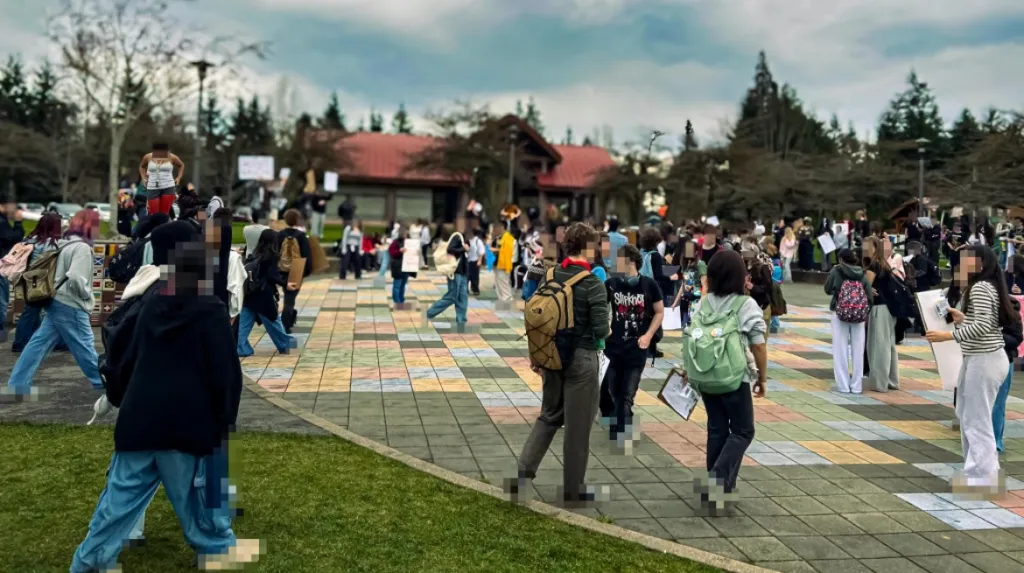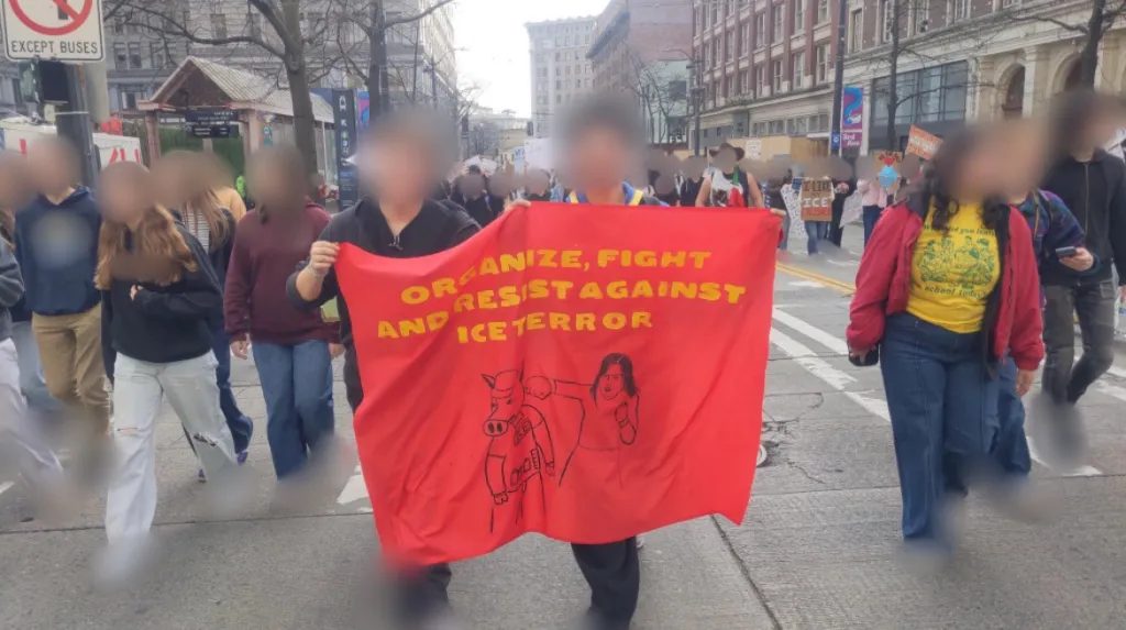 No dia seguinte, mais de 1.000 estudantes marcharam no centro de Seattle numa manifestação organizada pela Seattle Revolutionary Youth (Juventude Revolucionária de Seattle) juntamente com várias outras organizações. Os estudantes reuniram-se na Câmara Municipal de Seattle e seguiram em marcha pelas ruas até ao Space Needle e, mais tarde, até a uma instalação federal nas proximidades. Durante a manifestação, ativistas fizeram discursos relacionando o terror do ICE ao sistema imperialista mais amplo e expressando solidariedade às lutas anti-imperialistas no Terceiro Mundo. Ao longo da marcha, ativistas ergueram faixas com os dizeres “Organize-se, lute e resista ao TERROR DO ICE” e “Envie o terror do ICE e o imperialismo dos EUA para a sepultura: organize-se e lute pela revolução socialista”.