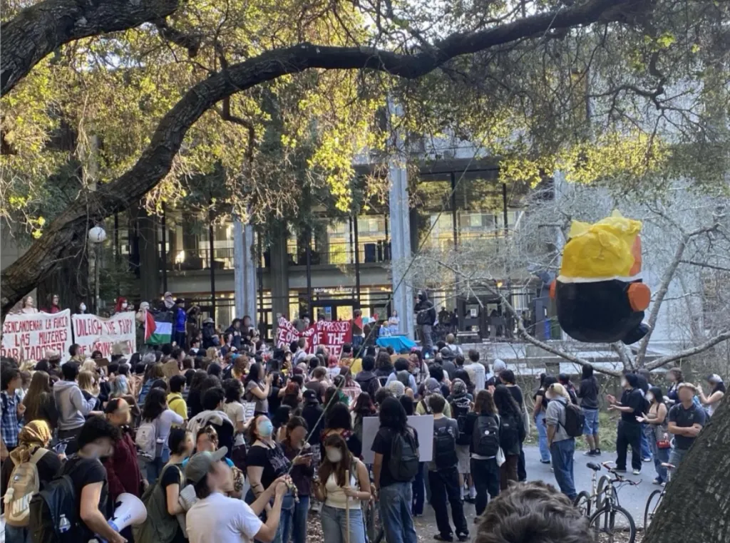 Em Santa Cruz, Califórnia, cerca de 400 estudantes se reuniram no dia 3 de fevereiro na Praça Vermelha da Universidade da Califórnia em Santa Cruz e marcharam por 800 metros pelo campus da faculdade. A marcha foi organizada pela Organização Estudantil Revolucionária — Santa Cruz. Durante a marcha, os manifestantes bateram numa efígie do ultrarreacionário Donald Trump e entoaram slogans como «Vamos lutar pelo poder dos trabalhadores, fazer esses tigres de papel se encolherem!» e «Estudantes pela classe trabalhadora, revolução para sempre!». Ativistas da RSO fizeram discursos condenando o terror do ICE e a reacção mais ampla do Estado e da sociedade dos EUA. Os oradores também denunciaram os crimes do imperialismo norte-americano em todo o mundo, incluindo o genocídio norte-americano-sionista contra o povo palestino e a invasão norte-americana da Venezuela.