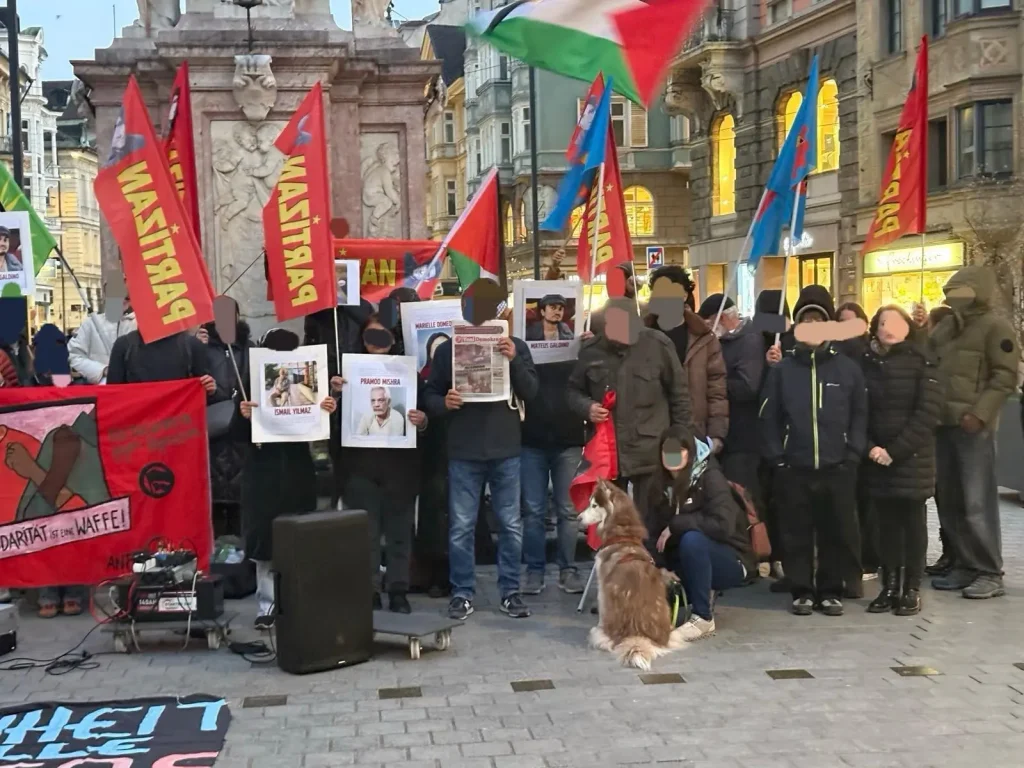 Durante a manifestação, os leitores do Partizan exibiram fotografias de prisioneiros revolucionários da Turquia, Índia e Brasil.