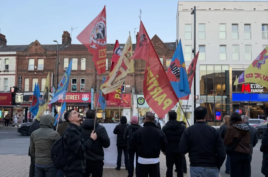 Durante a manifestação de hoje em frente à biblioteca de Woodgreen, foram frequentemente entoados slogans como «Liberdade para os presos políticos», «Os presos políticos são a nossa honra» e «Nós pagamos o preço, vamos fazê-los pagar o preço».