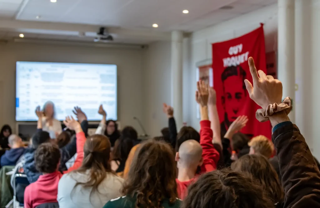Depois disso, o Comitê Nacional da Juventude Comunista foi eleito por votação secreta dos delegados presentes, encerrando a etapa interna do Congresso e marcando, após 81 anos, a tão esperada reconstituição da Juventude Comunista da França.
