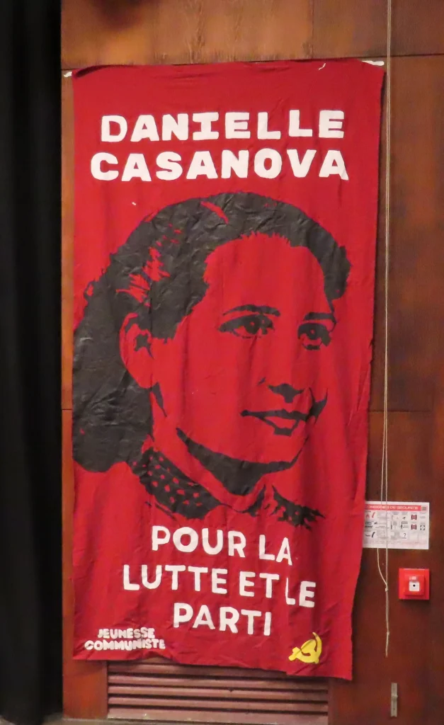 Ela concluiu seu discurso com uma saudação à reconstituição da Juventude Comunista, afirmando que, se Danielle Casanova estivesse aqui hoje, estaria muito reconfortada, reiterando a necessidade de organizar e unir o povo, e finalizando com a afirmação de que “Nunca baixaremos a cabeça; vivemos unicamente para a luta!”