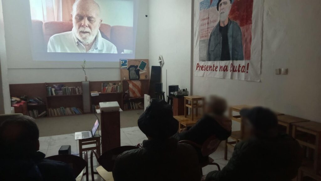 No ultimo dia 14 de Março de 2026, sábado, realizou-se em Sintra, no espaço cultural Mbongi, um cine-debate dedicado a impulsionar a memoria de Alípio de Freitas, propositalmente escamoteado pelos oportunistas e revisionistas que temem sua força verdadeiramente revolucionária, perante as massas portuguesas. O evento, organizado pela revista Nova Aurora em conjunto com o Comité de Apoio à Nova Aurora em Lisboa, teve apoio da Ação Anti-Imperialista (AAI),do Coletivo Mumia Abu-Jamal (CMA-J), do Núcleo de Estudos Manuel Quirós e do CEBRASPO Europa, juntou militantes, apoiantes, simpatizantes e pessoas interessadas em conhecer mais sobre a caminhada do Alípio de Freitas junto do camponeses.